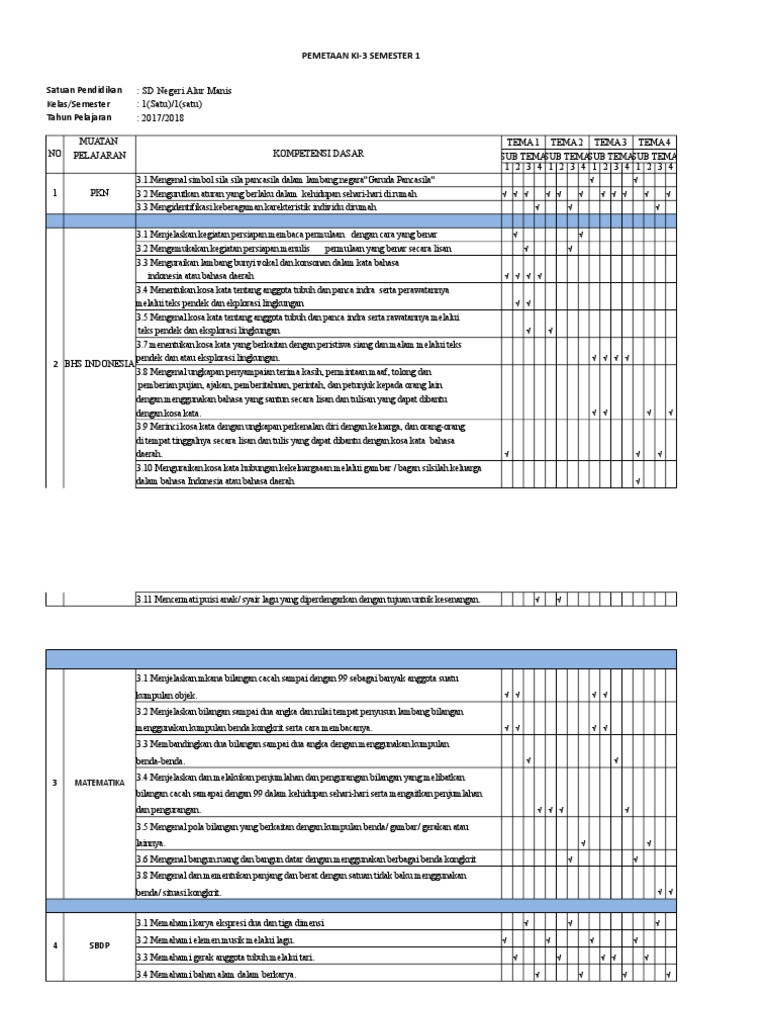 Demikian pemetaan kd kelas 3/iii sd/mi semester 2 kurikulum 2013 yang dapat saya bagikan, semoga bermanfaat. Guru k13 download kkm kelas 4 sd mi paket buku tematik sd kelas 3 semester 2 k13 revisi 2018 tema 5 8. Contoh pemetaan kd mapel pjok sd kelas 1 dan kelas 4 semester 1 tahun pelajaran 2016/2017 kurikulum 2013 revisi. Kumpulan pemetaan kd pjok sd/mi k13 semester 1 dan 2 tahun 2020/2021. Dalam permendikbud tersebut menjelaskan bahwa kompetensi inti merupakan kemamapuan siswa untuk mencapai standar.